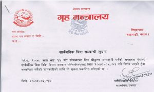 मन्त्रालयले सूचना जारी गरी मन्त्रिपरिषद्को ३ भदौको निर्णयानुसार मुलुकभर गरी बिदा दिइएको बताएको छ ।