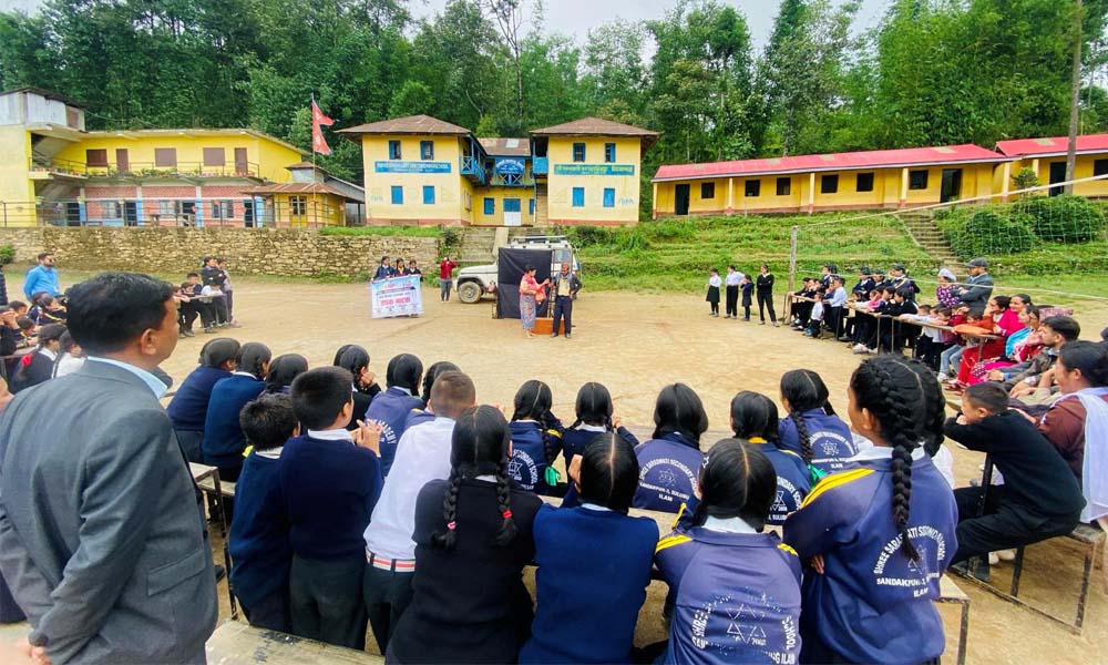 सन्दकपुर: चेतना नाट्य समूह इलामले सन्दकपुर गाउँपालिकाको विद्यालयमा बाल विवाह अन्त्य गर्न सडक नाटक प्रस्तुत गरेको छ । प्रदेश सरकारको सन २०२५ मा बाल विवाह अन्त्य गर्ने लक्ष्यलाई साथ दिन नाटक प्रस्तुत गरिएको चेतना नाट्य समुहका अध्यक्ष सुरेश पोर्तेलले जानकारी गराए ।