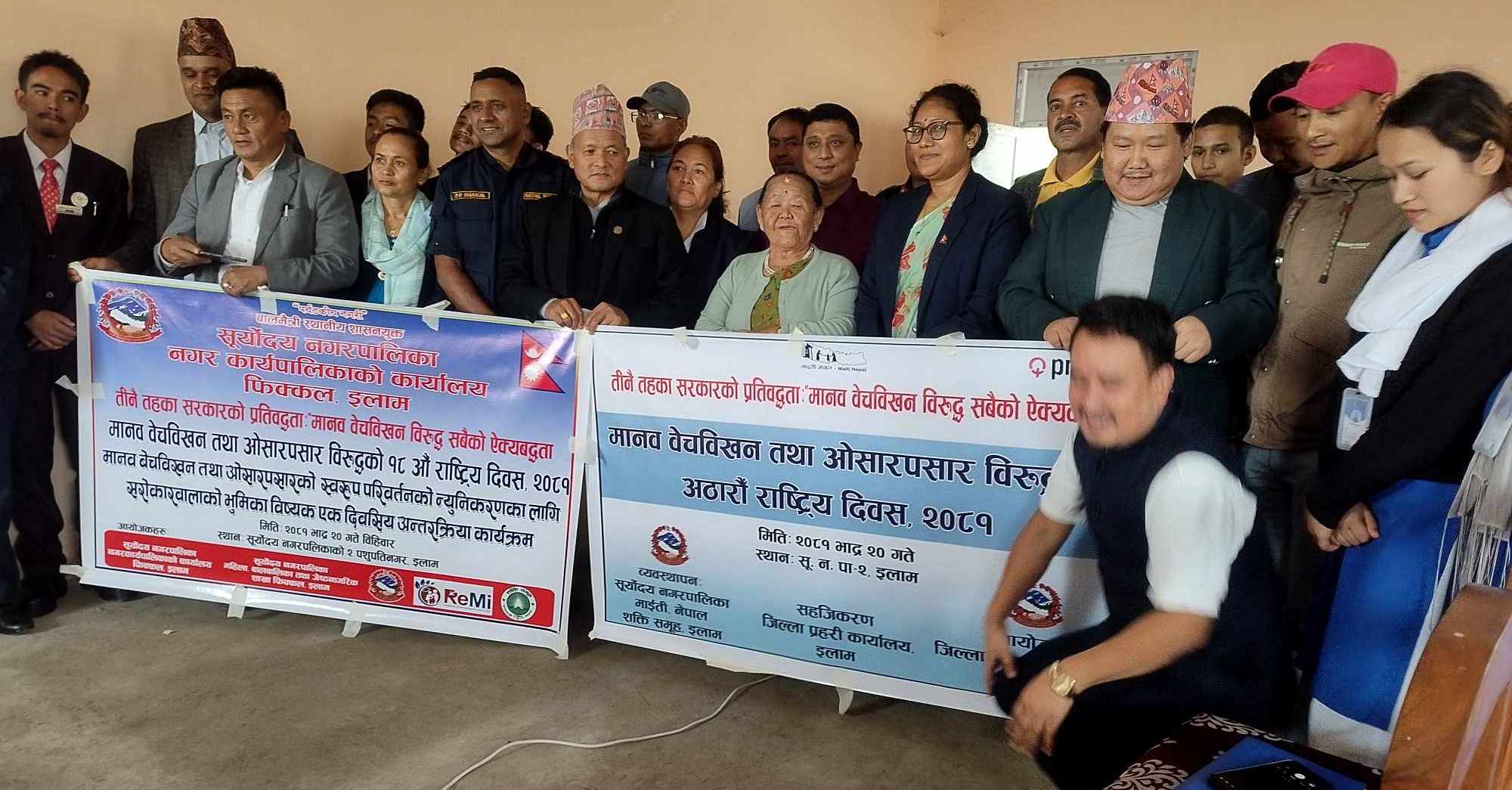 “मानववेचबिखन विरुद्धको १८ औं राष्ट्रिय दिवसको” अवसरमा जिल्ला प्रशासन कार्यालय इलामले आयोजना गरेको कार्यक्रममा बोल्दै मानव बेचबिखनबाट बच्न व्यक्ति स्वयं सजग हुनु पर्नेमा जोड दिए ।