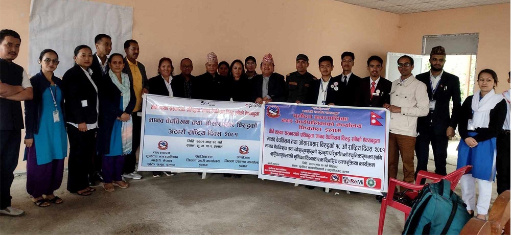 सूर्योदय नगरपालिका शिक्षा शाखाकी प्रमुख तारा सेर्पाले स्वागत गरेको कार्यक्रममा प्रहरी उपरिक्षक प्रभु ढकालले मानव बेचबिखन तथा सरक्षाका आवश्यक व्यवस्थापनका बारेमा जानकारी गराए ।