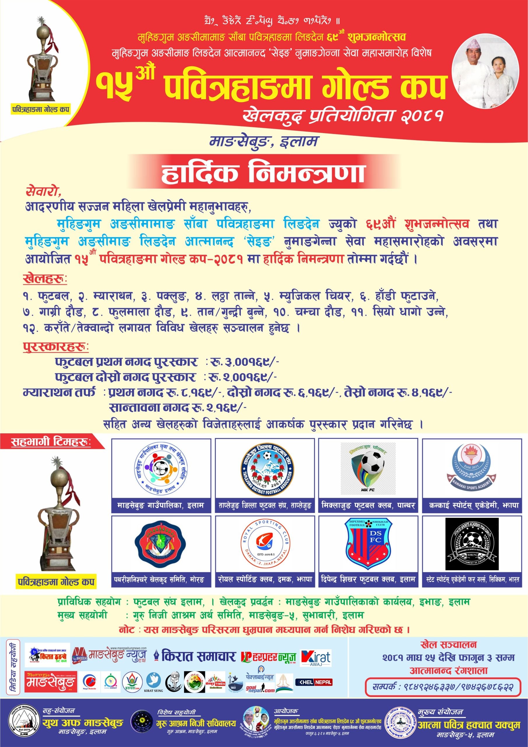माङसेबुङ: इलामको माङसेबुङमा ‘पवित्रहाङमा गोल्डकप’ को १५ औं संस्करणको तयारी शुरु भएको छ ।