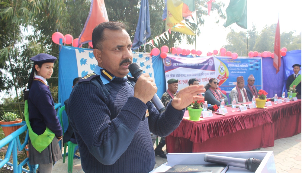 कार्यक्रममा स्थानीय जनप्रतीनिधी, शिक्षक, शिक्षिका, वुद्धिजिवी, भद्र भलाद्मी साथै सर्वसाधारण नागरीकहरु समेतको उपस्थितिमा जिल्ला प्रहरी कार्यालय प्रहरी उपरीक्षक एक नारायण कोइरालाले “लैङ्गिक हिंसा तथा मानव बेचबिखन” सम्बन्धि जानकारी गराए ।