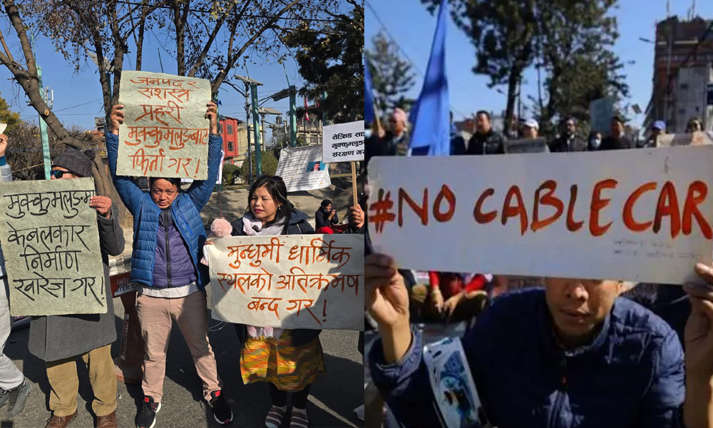 केबलकार परियोजना निर्माणको पक्षमा पनि नागरिकहरू सडकमा निस्किरहेका छन् । उनीहरूले केबलकारले जिल्लाको विकासमा सहयोग पुग्ने तर्क गरेका छन् ।@bbc.com/nepaliबाट ।