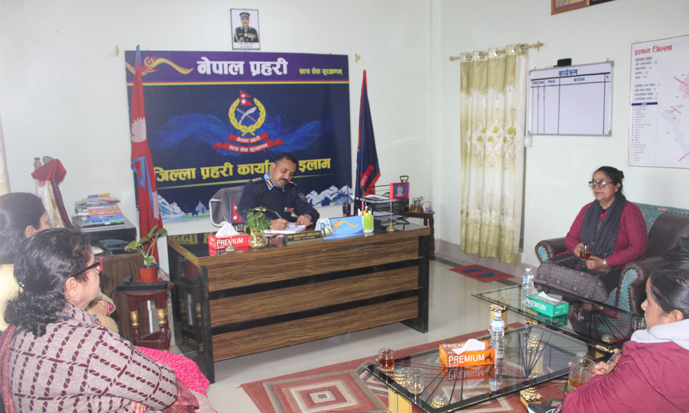 नगर महिला समन्वय समिति इलाम, महिला जागरण, आमा समुह लगायतका पदाधिकारीसँग महिला हिंसा, घरेलु हिंसा, लागु औषध नियन्त्रण जस्ता बिषयमा छलफल तथा अन्तरक्रिया भएको जनाइएको छ ।