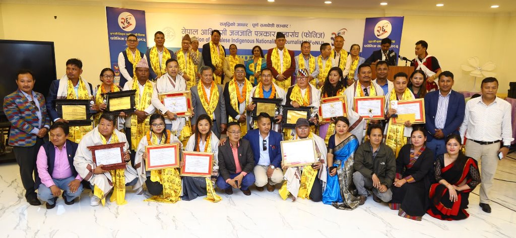 काठमाण्डौ: नेपाल आदिवासी जनजाति पत्रकार महासंघ फोनिजको २६ औं स्थापना दिवस मंगलबार १२ पत्रकारलाई सम्मान तथा पुरस्कार दिइएको छ ।