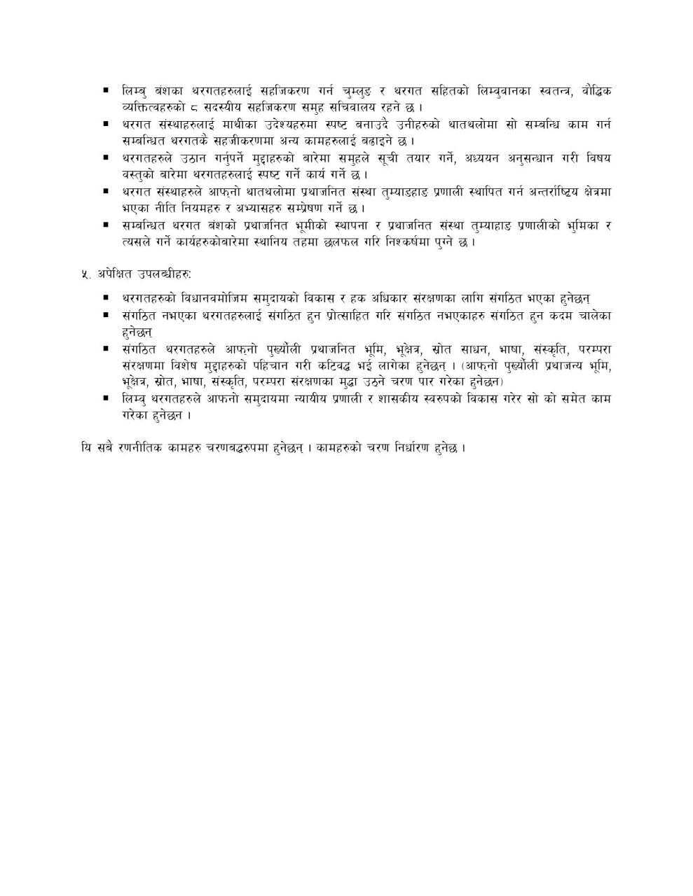 इलाम जिल्लामा बसोबास गर्ने याक्थुङ लिम्बुहरुको समग्र विकासमा सागठिन आधार निर्माण गर्ने अन्तरक्रिया कार्यक्रमले थरगत आआफ्नो पकड क्षेत्रको गाउँ स्तरको विकास भाषा लिपि संस्कृति परम्परा भूमि प्राकृतिक स्रोत चर्चेको बन जंगल चिहान माङ्गेन्ना यक मुन्धुमी स्थलहरुको संरक्षण र प्रवर्द्बन गर्दै अन्तराष्ट्रिय कानुनले सुनिश्चित गरेको आफ्नो प्रथाजनित भूमिलाई व्यवहारिक रुपमा स्थापित गर्नेछ । यसका साथै लोप भइसक्न लागेको लिम्बुहरुको प्रथाजनित परम्परागत संस्थालाई थरगत बसोवास रहेको गाउँमा प्रथाजनित संस्थालाई स्थापित गर्दै तिनीहरुलाई न्यायिक र शासकीय स्वरुपमा कार्य गर्न सबल सशक्त बनाउँने अपेक्षा गरिएको छ ।