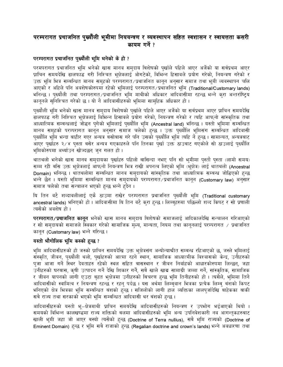 परम्परागत प्रथाजनीत पुर्ख्यौली भूमिमा नियन्त्रण र व्यवस्थापन सहित स्वशासन र स्वयत्तता कसरी कायम गर्ने ?