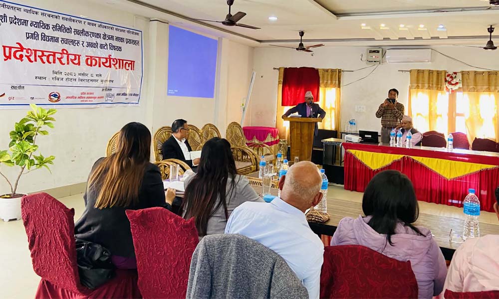 बिराटनगर: मानव अधिकार मञ्चले प्रदेशको न्यायिक समितिको सवाल र अबको बाटोका विषयमा मंगलबार बिराटनगरमा कार्यशाला सम्पन्न गरेको छ । जिआईजेट र जेठएफडिको आर्थिक सहयोगमा सम्पन्न कार्यशालमा न्यायिक समितिको सबलिकरणको क्षेत्रमा भएका प्रयास, प्रगती, विद्यमान सवाल र अबको बाटोको विषयमा छलफल भएको थियो ।