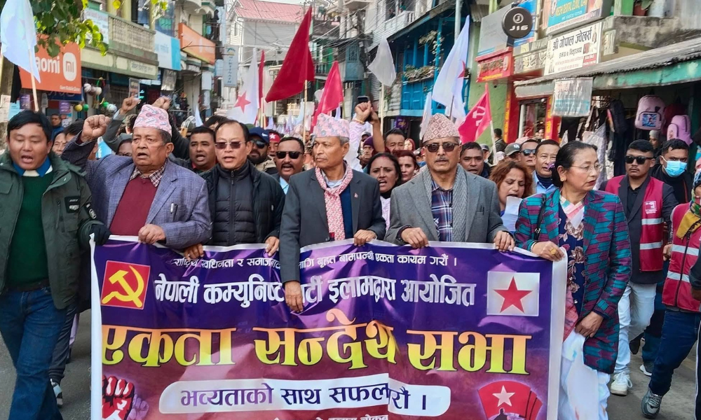 इलाम: राष्ट्रीय स्वाधिनता र समाजवादका पक्षमा लामबद्ध हुन नेपाली कम्युनिष्ट पार्टीले एकता सन्देश सभाको आयोजना गरेको बताए ।
