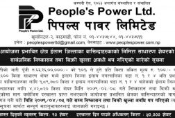पिपुल्स पावर लिमिटेडको सेयर साउन ५ गतेसम्म आवेदन दिन पाइने